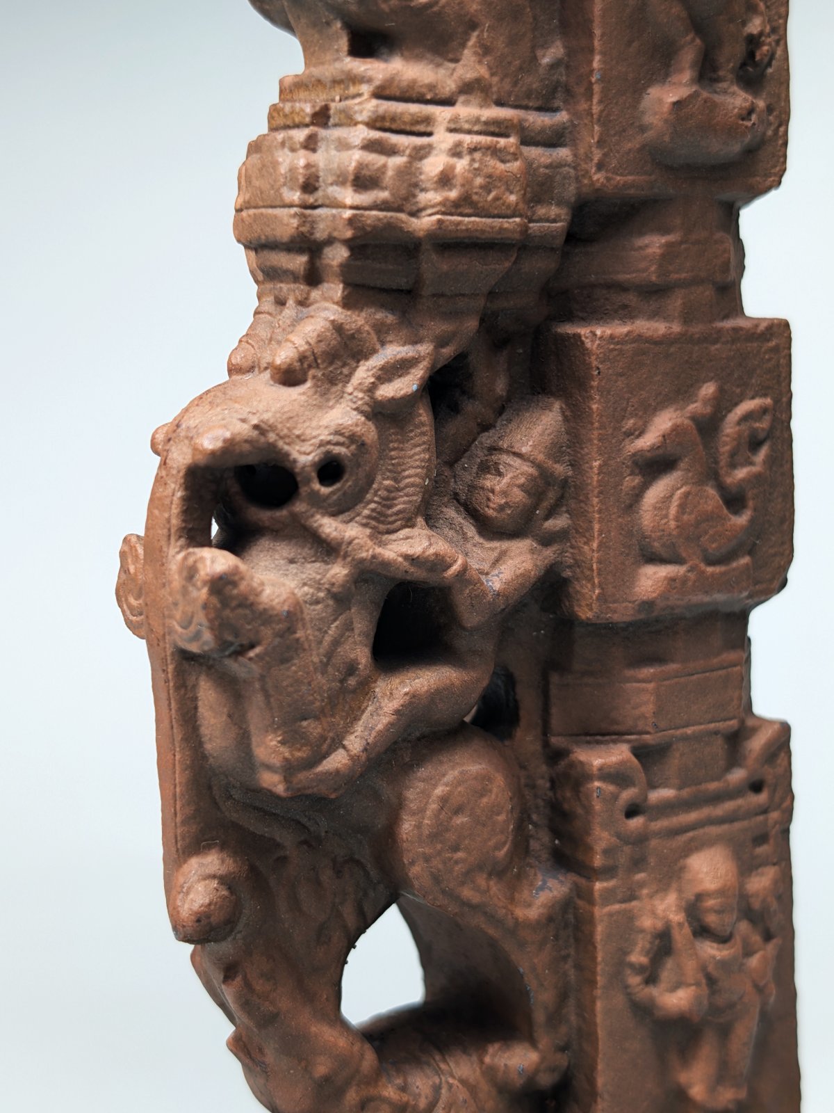 The Yali, a composite creature with the body of a lion, the trunk of an elephant, and at times the tail of a serpent, is often shown with a warrior rider. Symbolically, it represents unmatched power, ferocity, and the triumph of order over chaos. Yali is a protector from both physical and spiritual evil.